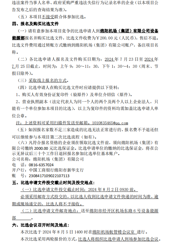 綿陽(yáng)機(jī)場(chǎng)消防設(shè)施設(shè)備維保項(xiàng)目比選公告